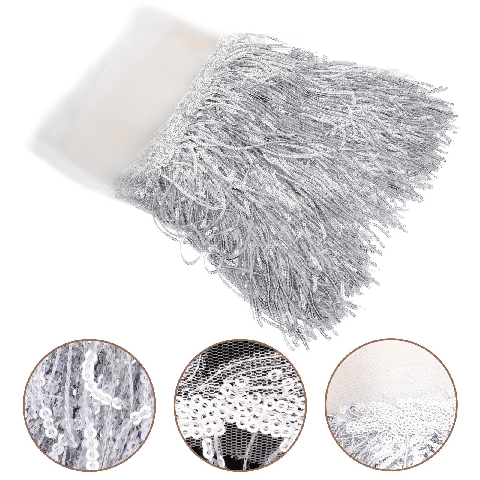 DINHEAROM 1 Piece Househould Sewing Fabric Polyester Silk for DIY Projects and Clothing Accessories Silver Tassel Design